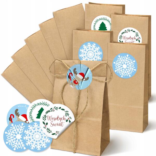 Allbag Papírtáskák 12x7x26cm Karácsonyi Táskák Ajándék Csomagolás Matricák