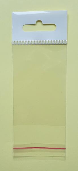 Felakasztható, eurolyukas ragasztócsíkos BOPP (celofánszerű) tasak. A legkisebb választható mennyiség: 100 db,
