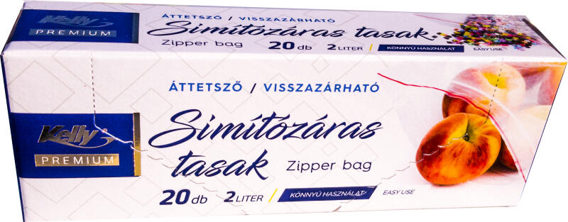 Kelly Premium Simítózáras tasak, visszazárható - 2 liter, 20 db