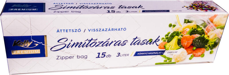 Kelly Premium Simítózáras tasak, visszazárható - 3 liter, 15 db