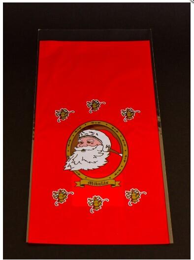 BOPP (celofánszerű) tasak Mikulás mintával. Többféle mintával kapható. A legkisebb választható mennyiség: 100 db,
