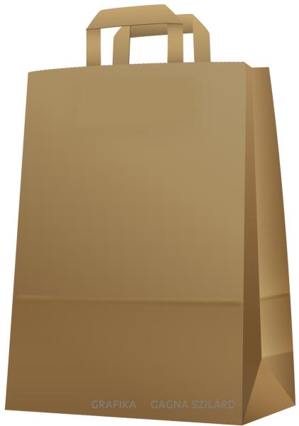 Barna papírból készült bevásárló táska/reklámszatyor szalagfüllel. A legkisebb választható mennyiség: 50 db,