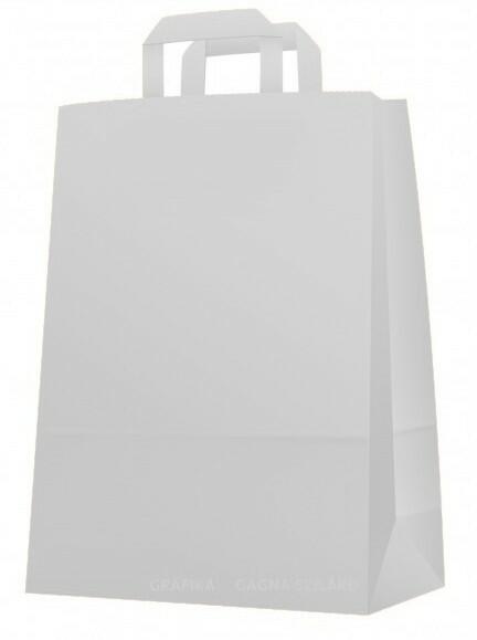 Fehér papírból készült bevásárló táska/reklámszatyor szalagfüllel. A legkisebb választható mennyiség: 50 db,